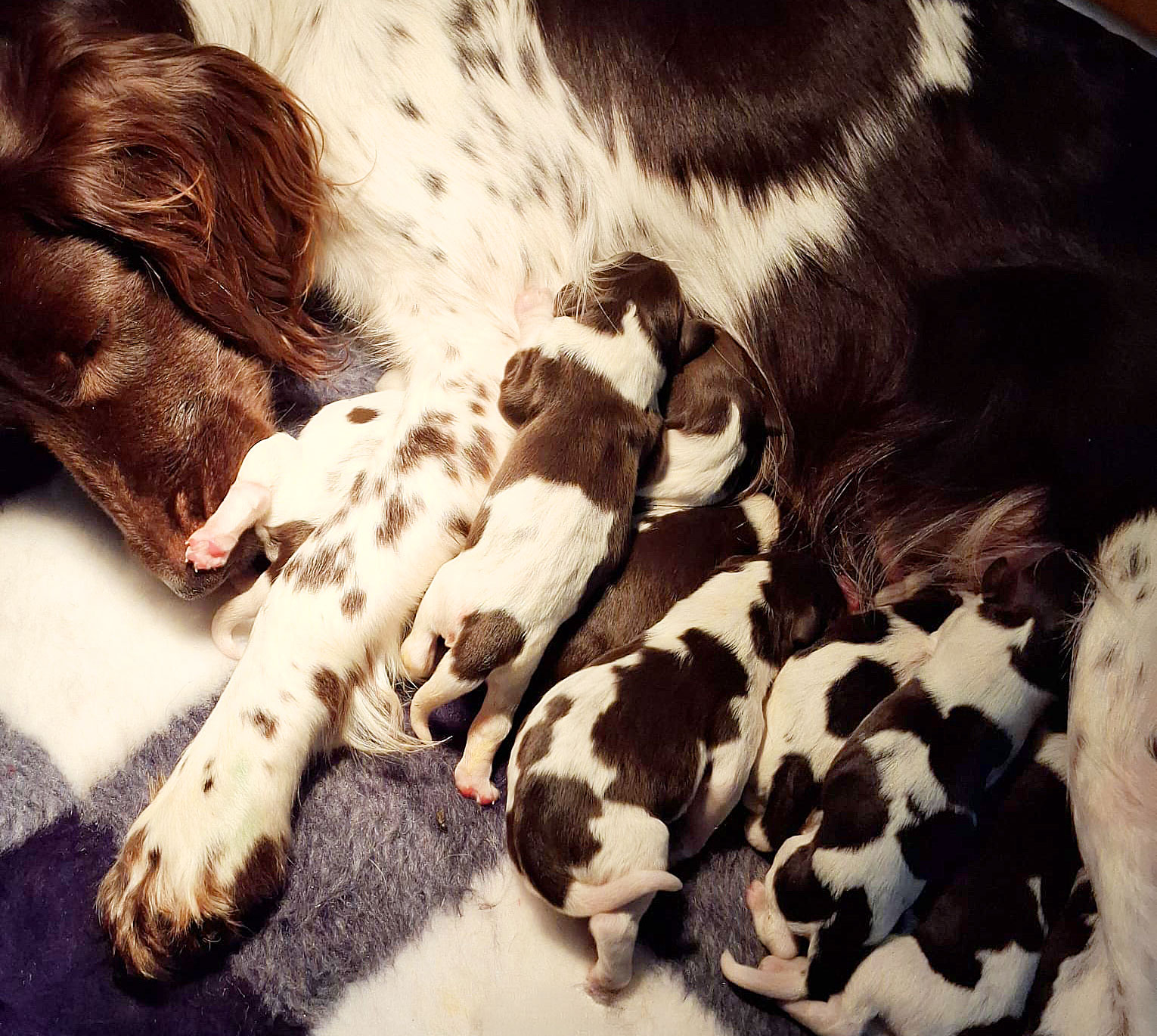 De vader van dit nest is Nederlands Kampioen Vennis van de Rooise Dreven en de moeder is Hersskapets Kika.